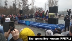 В Иркутске 24 марта проходит митинг "За чистый Байкал". На набережной в центре города, по разным оценкам, собрались от пятисот до тысячи человек, сообщил корреспондент "Сибирь.Реалий" с места событий. Акция проходит в форме митинга-концерта. Участники читают стихи, поют песни о Байкале, исполняют танцы, посвященные озеру.