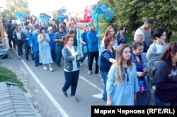 Основной целью шествия "в синем цвете" создатели театра называют желание рассказать жителям Иркутска про "людей, которые живут в нашем городе, гуляют по улицам, смеются, любят, никогда не взрослеют".