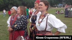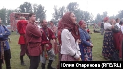 Музыканты из Тувы на "Обрядовой поляне" провели мастер-класс по хоомею – горловому пению. Но тут уж повторить за ними зрителям было невозможно – хоомею учатся много лет, можно сказать, всю жизнь.