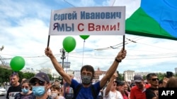 После задержания избранного губернатора края Сергея Фургала в Хабаровском крае и соседних регионах несколько дней проходят митинги и пикеты. Чаще всего митингующие требуют для губернатора "справедливого суда в регионе". 22 июля они потребовали отставки президента России Владимира Путина.