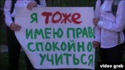 Дети, появившиеся 3 сентября во дворе школы №21 с плакатами "Страшно ходить в школу", "Я тоже имею право спокойно учиться", "Не хочу смотреть, как душат и бьют моих одноклассников", выступали против того, что их одноклассник Вася вернулся на очную форму обучения.