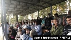 Для обсуждения столь злободневной и острой темы возведения храмов администрация Читы предоставила максимально удаленную от центра города площадку – спортивную базу "Березка". Добраться туда можно только на автомобиле, общественный транспорт в эти края не ходит. Все, кто приехал, сосредоточились на стадионе, где собралось более 500 человек. Некоторые из них прибыли организованными коллективами: в частности, послушниц из Атамановского женского монастыря доставили на специальном туристическом автобусе.