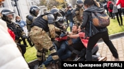 – Фашисты! Фашисты! Фашисты! – срывая голос, кричала пенсионерка. Но омоновцы отодвигали резиновыми дубинками всех, кто пытался помочь женщине, лежавшей на асфальте: она упала во время атаки омоновцев и, как выяснилось потом, получила черепно-мозговую травму и оказалась в больнице. Свидетели говорят, что ее толкнул кто-то из сотрудников правоохранительных органов.