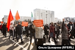 – Да он сам себя боится. А нам он тут никому не нужен. Мы мирные люди. Можем, конечно, быть суровыми дальневосточниками. Но протестуем мирно, ничего не громим, как он себе навоображал. Может, он просто сам и верит в то, что мы "горлопаны" и идем тут все крушить? – добавляет другой участник протестного шествия Андрей.