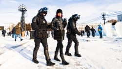 Во Владивостоке силовики перекрыли все подходы к точке сбора, поэтому протестующие собрались на набережной. Там полиция вытолкала всех на лёд. Люди теперь водят хоровод и кричат "Путин вор!".
