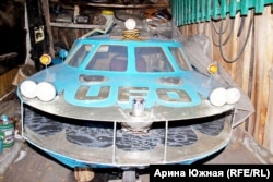 Одно из самых известных изобретений Гришаева – средство передвижения, известное среди местных как НЛО. Оно не рассчитано на холода, поэтому сейчас припарковано в сарае. Однако с наступлением теплой погоды изобретатель пользуется им практически постоянно – для поездок в Кормиловку, административный центр Кормиловского района, к которому относится Байкал.