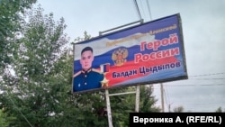 Теперь вдоль главной дороги в поселке висит баннер с портретом Балдана, а в центре собираются установить его бюст.
