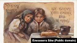 – Елизавета Бём была одним из основоположников русской иллюстрированной открытки, и у нее появилось масса подражателей, – рассказывает Лев Боярский. – На нашей выставке можно увидеть целые серии открыток, выполненных в похожей манере в начале XX века. Это 15 рождественских и пасхальных открыток Елены Лебедевой-Анохиной, 38 открыток из серии "Дети на войне" Александра Лаврова, а также все 10 открыток серии "Дети-политики" Владимира Табурина.