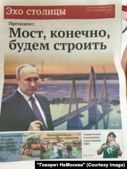 10 сентября 2023 года в Якутии прошли очередные большие выборы. Кроме главы региона выбирали также глав районов, депутатов и много кого еще. Тему моста перед выборами откопали вновь, для этого на деньги мэрии Якутска отпечатали 100 000 листовок, замаскированных под газету с Владимиром Путиным, обещающим мост на первой полосе.